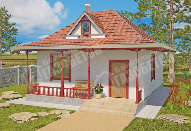 Небольшой дом в народном стиле. Требует минимальных затрат, возводится в течении двух месяцев. Подходит для среднестатистической семьи.